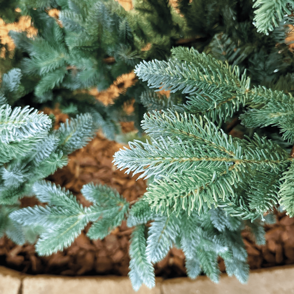 Caratterizzata da rami folti e una tonalità verde con sfumature tendenti al grigio, la collezione di abeti artificiali Silver Po richiama l’atmosfera naturale degli abeti nelle foreste invernali.