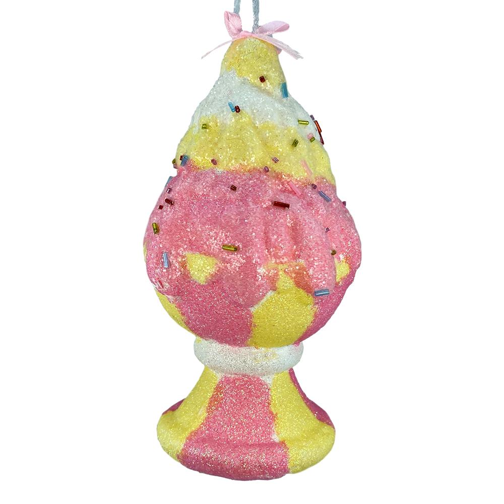 Deliziosa Coppa Gelato Rosa e Gialla in polistirolo ricoperta da glitter e perline colorate.