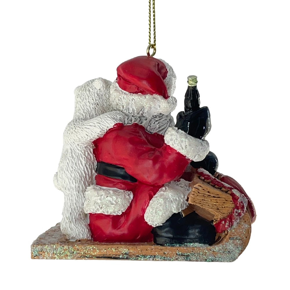 Babbo Natale con Orsetto su Slittino Coca-Cola® in Resina Kurt Adler – H 7 cm