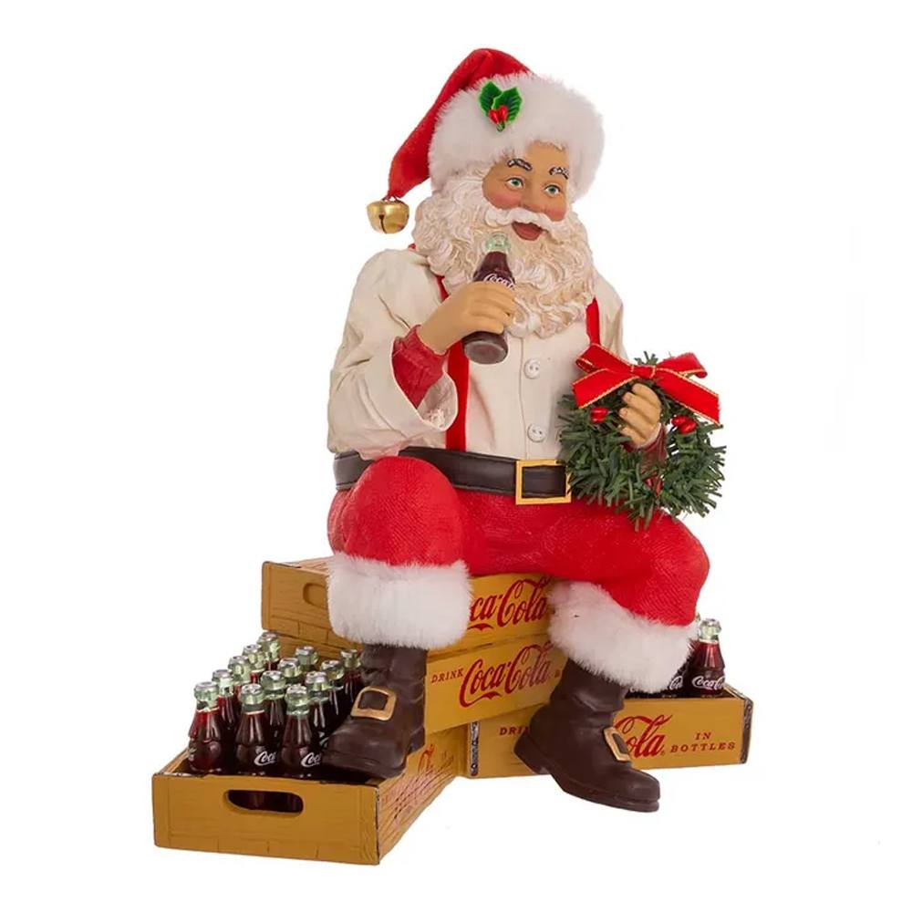 Babbo Natale Pregiato Seduto su Casse di Bottiglie Coca-Cola® Kurt Adler – H 25 cm