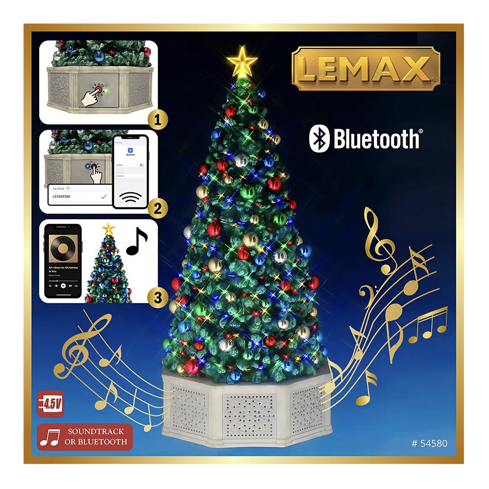 Il Musical Tree (codice 54580) Lemax è un albero di Natale luminoso con altoparlante integrato e connessione Bluetooth: colleghi lo smartphone, scegli la tua playlist e riempi la stanza con le tue canzoni natalizie preferite.