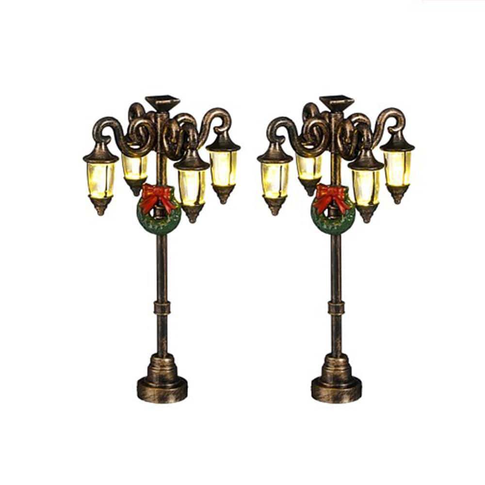 Lampioni a Quattro Bracci con Ghirlanda H 12 cm, set di 2 pezzi Accessorio Illuminato LuVille – 1162545