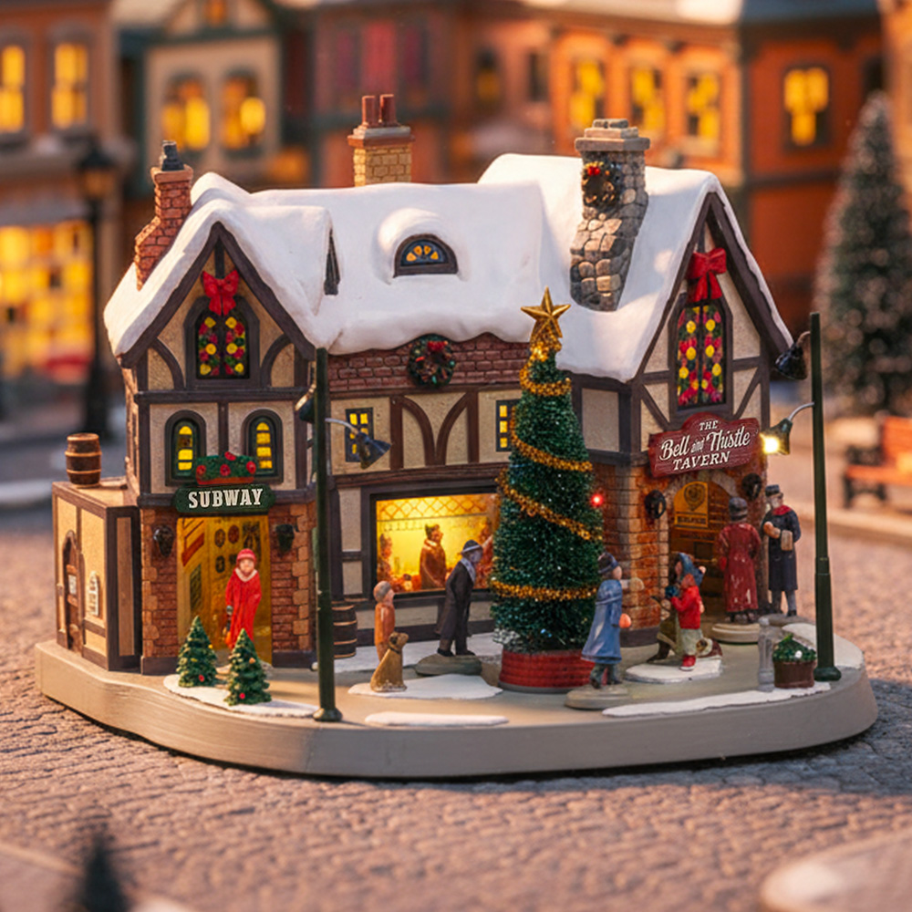 Il The Bell & Thistle Tavern Lemax (codice 05682) è uno degli edifici più suggestivi della collezione Caddington Village, un luogo accogliente che diventa punto di ritrovo per viaggiatori e abitanti della città durante le feste natalizie.