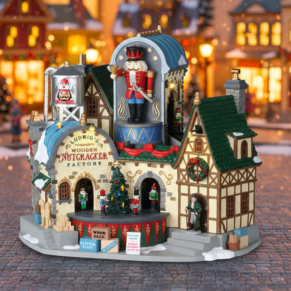 Il Ludwig’s Wooden Nutcracker Factory Lemax (codice 95463) è uno degli edifici più affascinanti della collezione Caddington Village: una fabbrica natalizia dedicata alla produzione degli iconici schiaccianoci in legno, simbolo delle feste e del mondo Lemax.