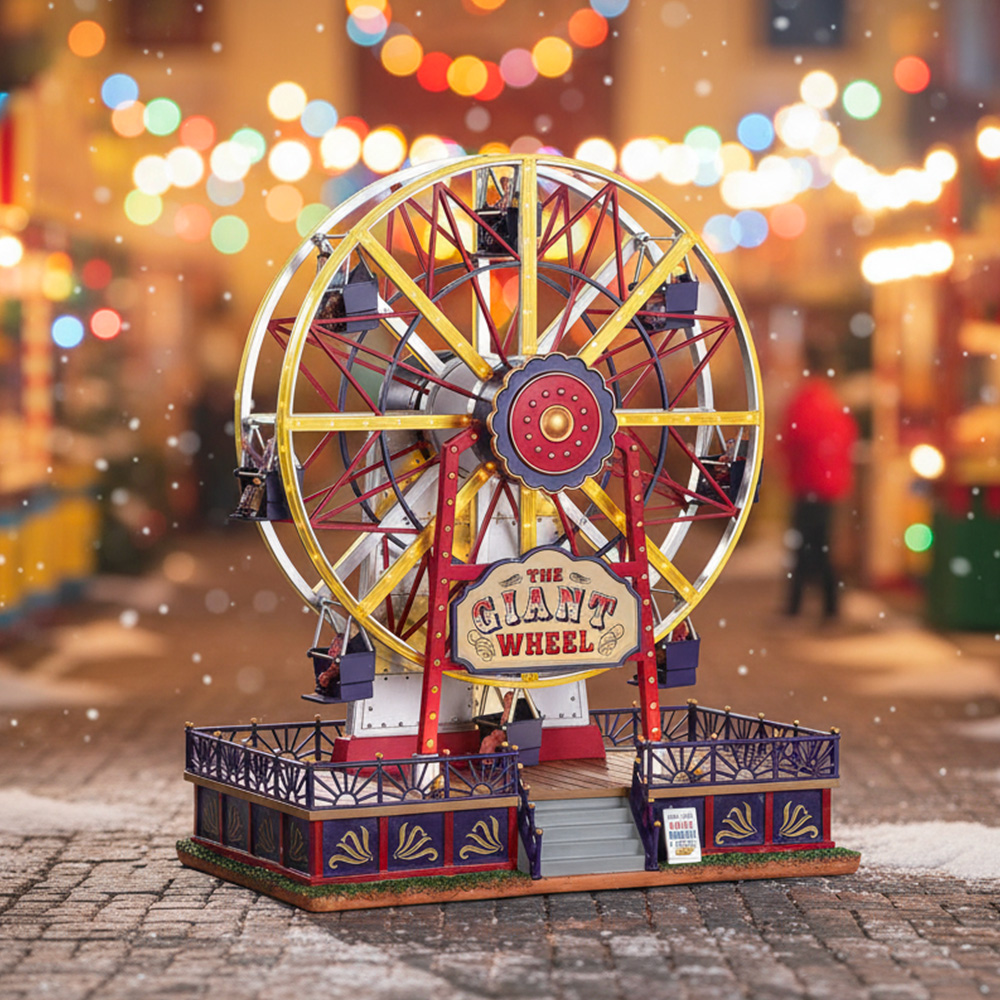 La The Giant Wheel Lemax (codice 94482) è la regina del luna park: una maestosa ruota panoramica che domina la collezione Carnival, portando nel tuo villaggio Lemax tutta la magia delle fiere e dei parchi divertimento.