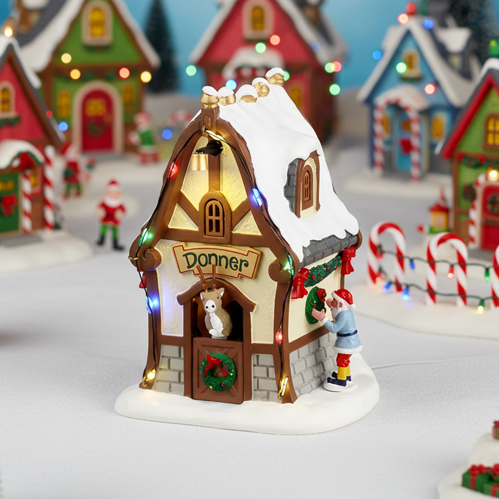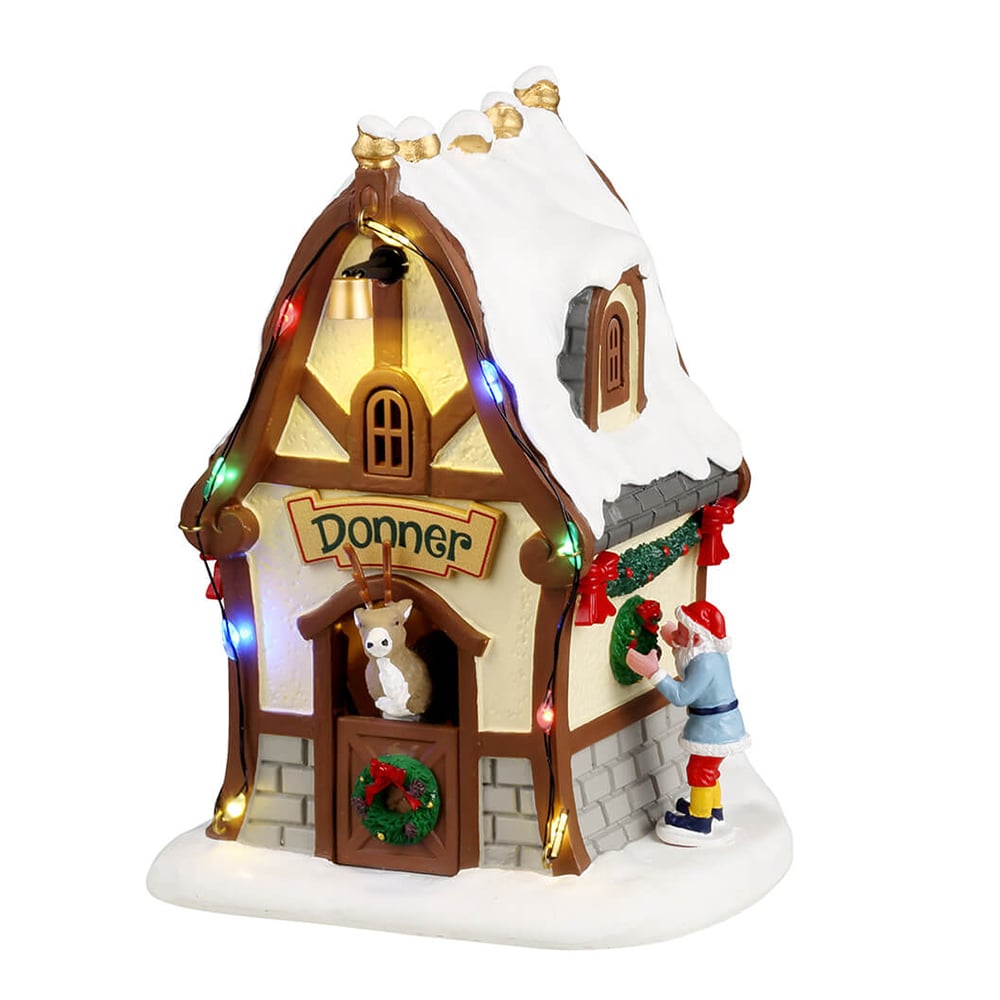 Il Donner’s Den Lemax (codice 44333) è una delle casette delle renne della collezione Santa’s Wonderland, dedicata a Donner, la possente renna di Babbo Natale, simbolo di forza e resistenza, sempre pronta a trainare la slitta nelle notti più gelide del Natale.