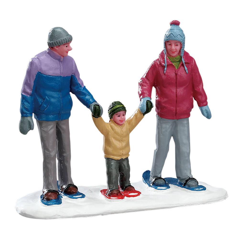 Immergiti nella magia del Natale con la figurina Lemax Snowshoe Family (codice 52336) appartenente alla collezione Vail Village.
