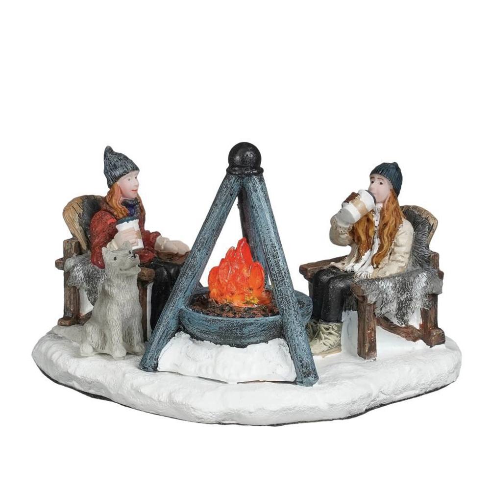 Una scena che può scaldare ogni scenario del villaggio grazie al calore del fuoco, il sentimento di amicizia e fiducia, e anche un tenero amico a quattro zampe.