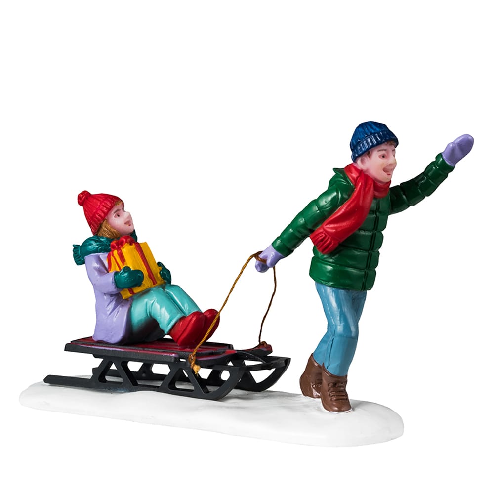 All’alba della Vigilia di Natale, la neve copre ancora le strade tranquille del villaggio, ma due bambini felici emergono con entusiasmo, trainando una slitta carica di regali scintillanti verso le case degli affetti più cari. Il viso è illuminato dall’eccitazione, il passo rapido, il cuore colmo di felicità: è una scena che incarna perfettamente lo spirito natalizio e l’amore condiviso nel tuo villaggio Lemax.