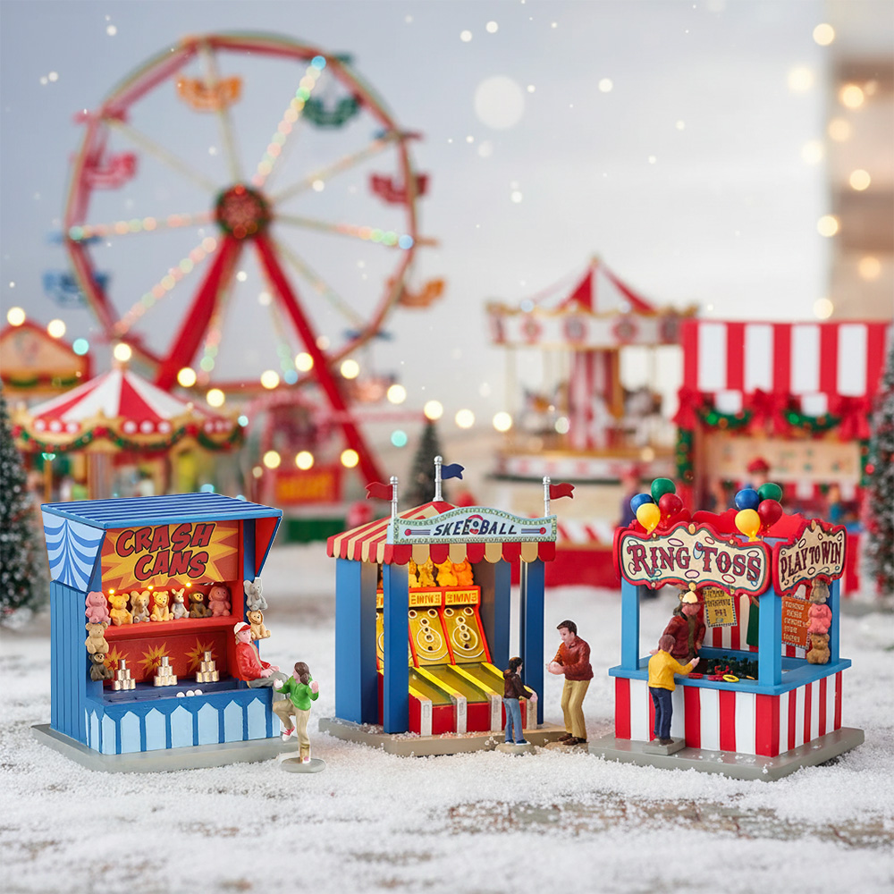 Bancarella del Centro al Bersaglio Skee Ball Game H 15 cm, set di 3 pezzi Chiosco del Luna Park Illuminato Lemax – 54461