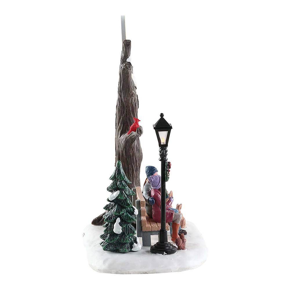 Di fianco alla loro panchina c’è un Lampione Nero con una Ghirlanda Natalizia.